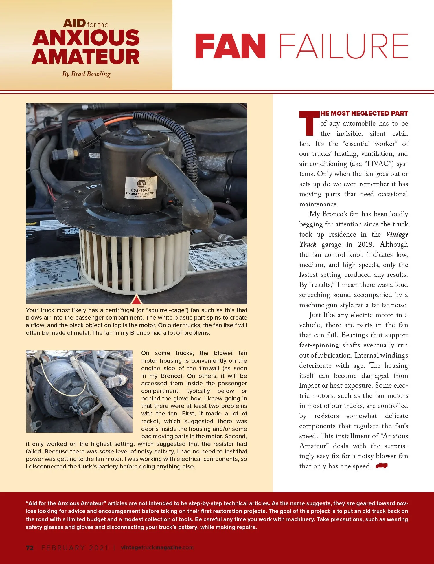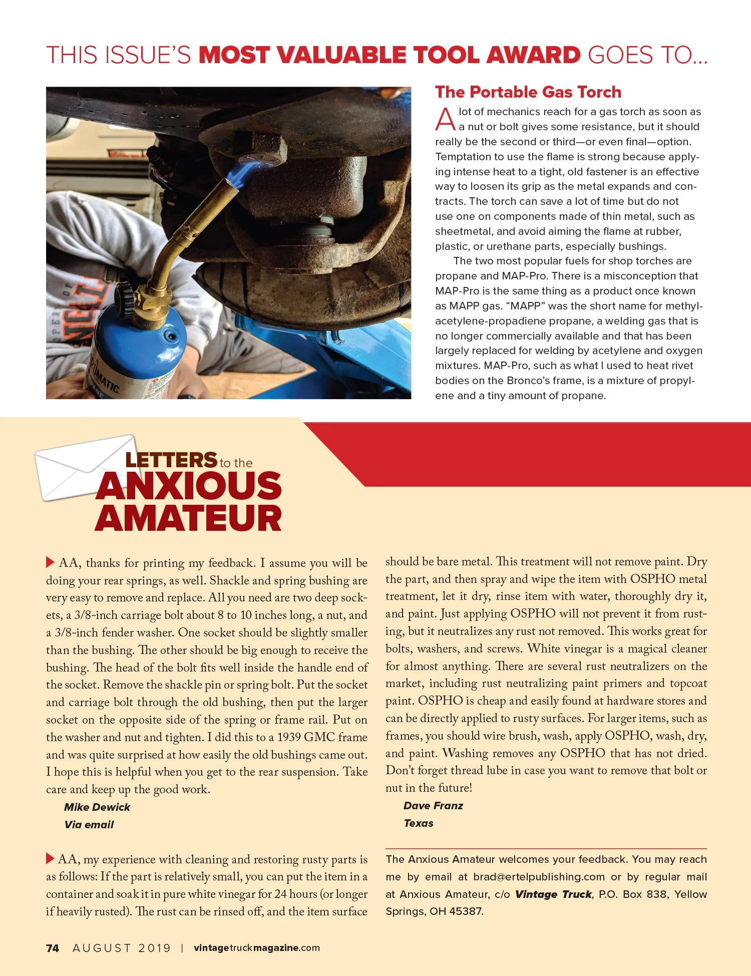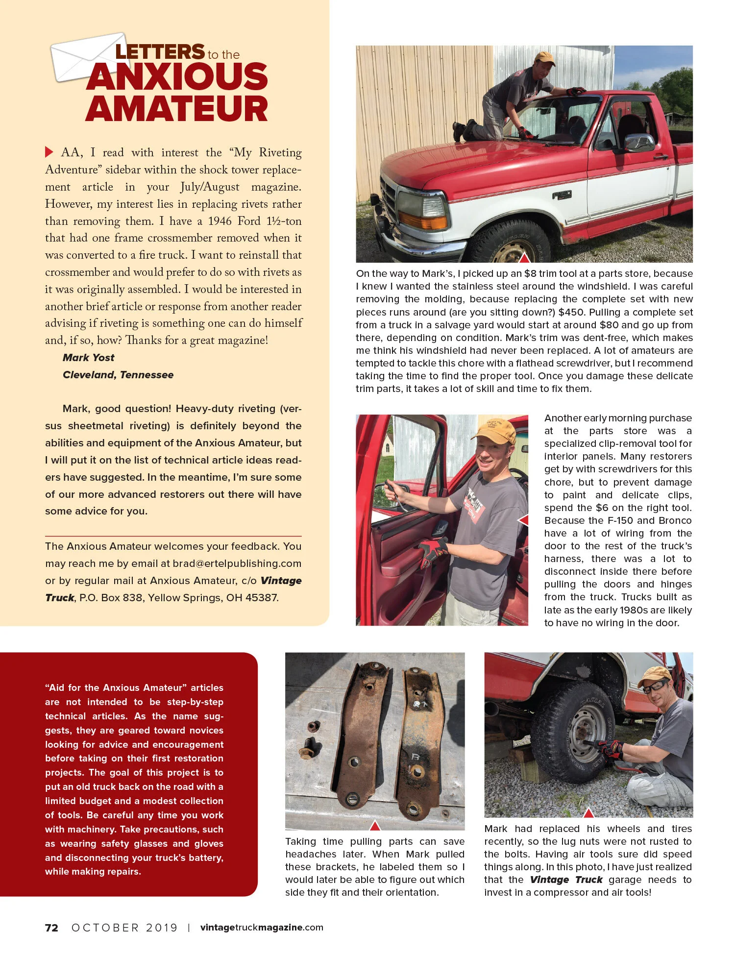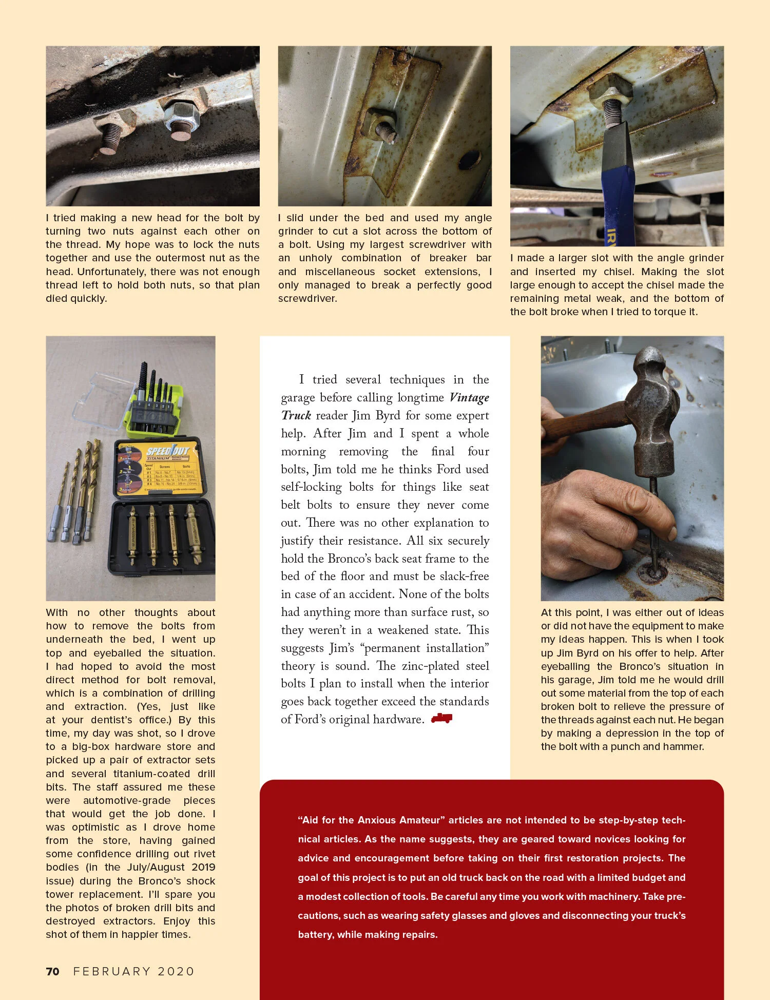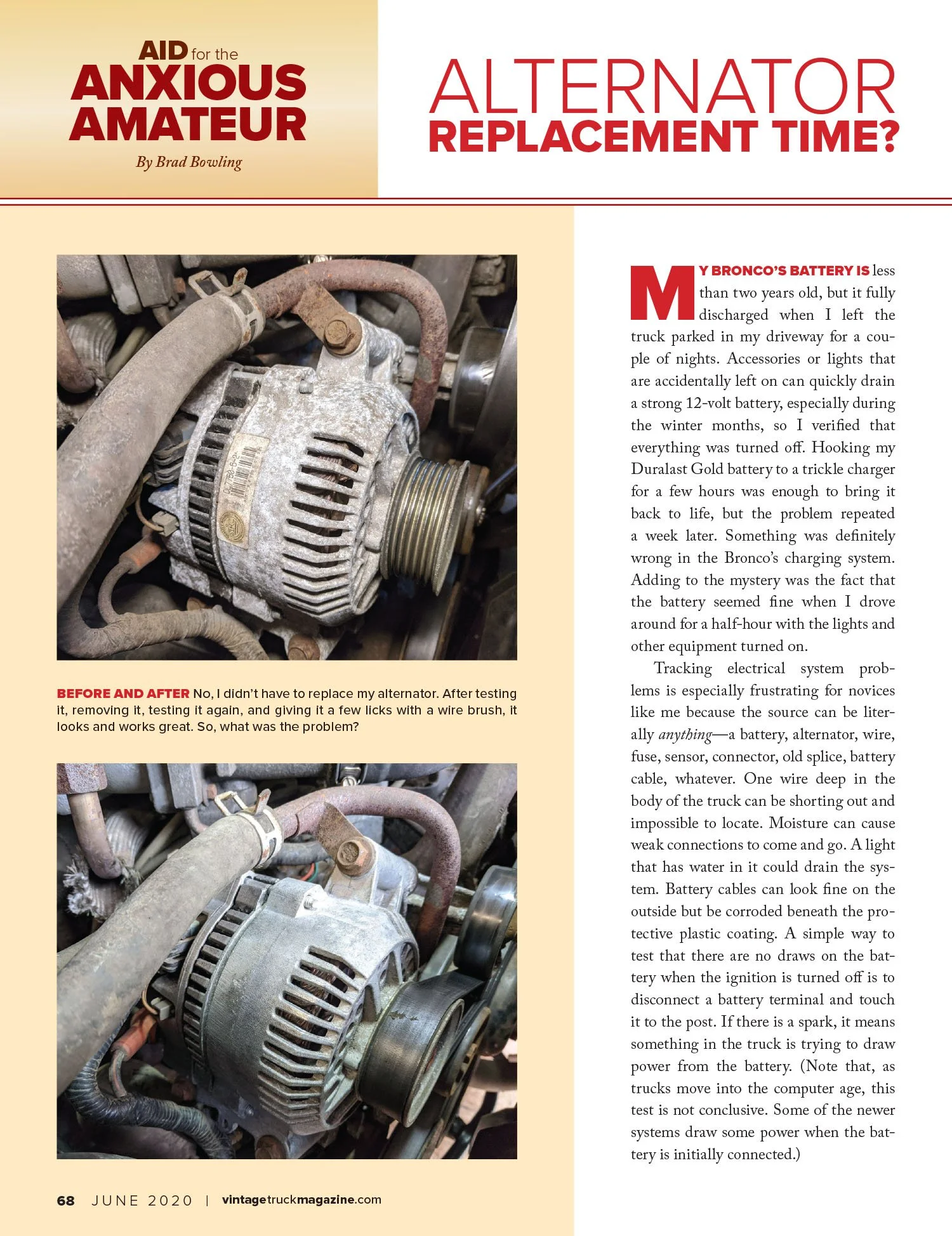 I have been using my 1996 Bronco to write technical articles in Vintage Truck magazine since the September/October 2018 issue. I am also the editor of that magazine. (If, by any chance, you would like to know about about the magazine or subscribe, visit VintageTruckMagazine.com.